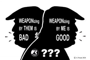 HYPOCRISY OCCURS WHEN YOU ASK OTHERS TO LIVE UP TO A STANDARD YOU DO NOT LIVE UP TO YOURSELF. DONALD TRUMP accuses the current administration of “weaponizing” the government, that is, using official government offices and programs against individuals and groups in inappropriate, biased, or even illegal ways. He argues that current government weaponization undermines …